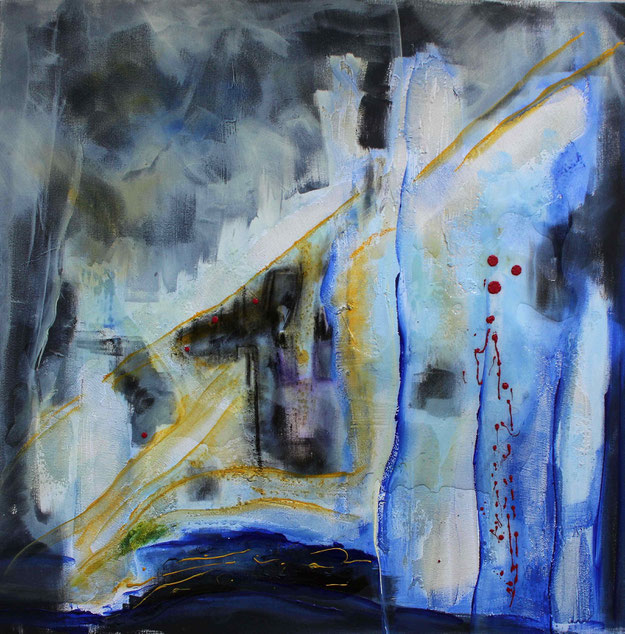 MIXED MEDIA: Strukturmasse, Acrylfarben, Kreide, Lack auf Leinwand